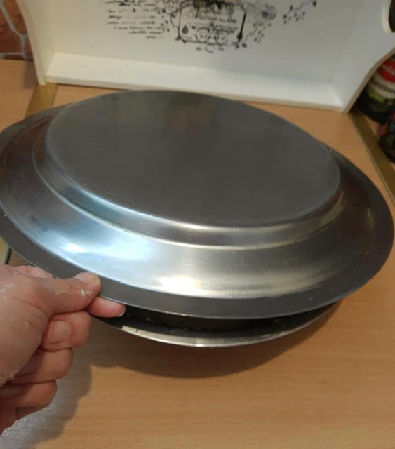5.Кога рерната убаво ќе биде загреана на 250 степени, извадете го тенџерето и во него истресете го тестото. Внимавајте да не се изгорите, користете заштитни ракавици. Одозгора малку наросете брашно (еден прстофат).