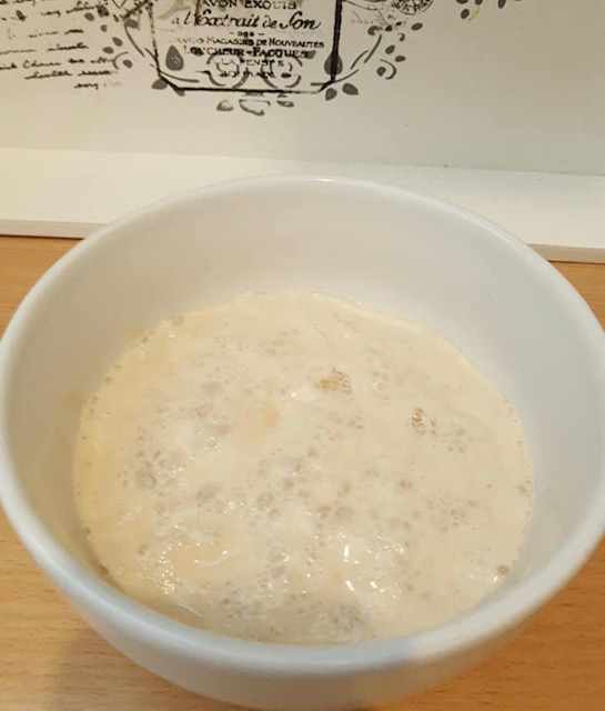1.Во 200 мл млака вода разматете една кесичка сув квасец или 20 г свеж квасец и една лажичка свеж квасец. Промешајте убаво и оставете 10-тина минути да се активира квасецот.