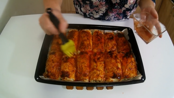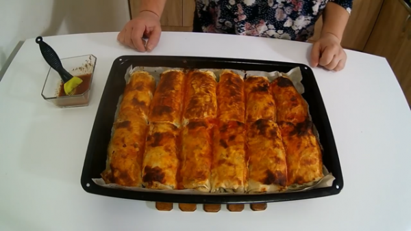 Ролатите редете ги во плехот и одозгора премачкајте ги со малку доматен сос.