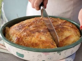 Се подготвува од готови кори, но клучот е во преливот со квасец кој ги омекнува корите и им дава структура како кај домашно месено тесто.