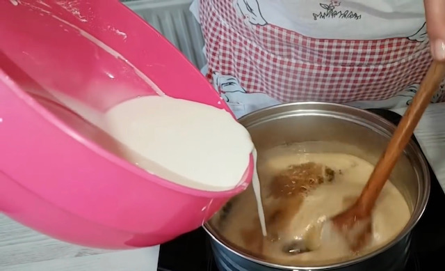 За фил: Во густинот додадете вода и убаво промешајте да нема грутчиња. Преостанатата вода ставете ја на оган заедно со шеќерот и нес кафето, па кога ќе зоврие додадете го густинот со постојано мешање додека да добиете густ крем. Тргнете на страна да излади.