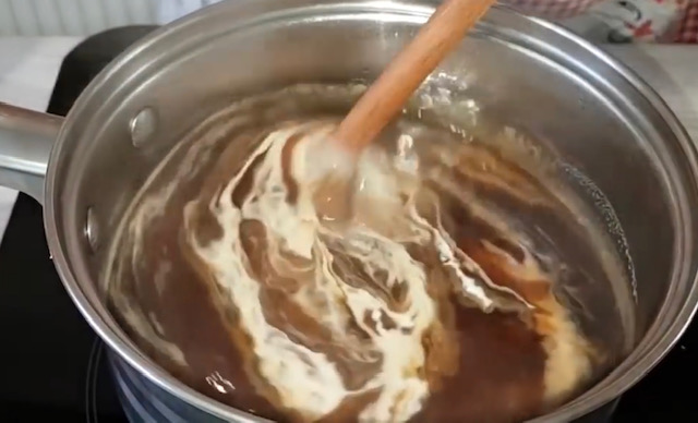 Путерот измиксајте го пенасто, па во него постепено додадете го изладениот крем од нес кафе со постојано матење.