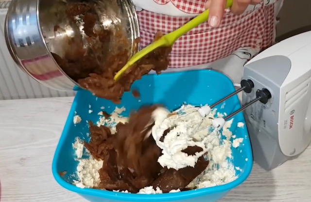 Путерот пенасто изматете го. Додадете го шеќерот и продолжете со матење. Во брашното ставете прашок за печиење и промешајте. Потоа додадете го во изматениот маргарин, па заедно добро измиксајте ги. Во смесата ставете промешана една лажица нес кафе во 100 мл вода и продолжете со матење.