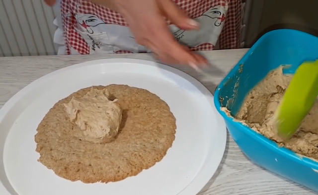 Добиеното тесто поделете го на три дела од кои ќе се испечат три кори врз превртена тепсија или калап. Калапот за торти обложете го со хартија за печње но од неговиот заден дел.