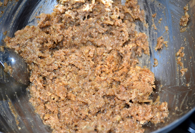Потоа процедете ги, па додајте ореви, лебни трошки и ако сакате суво грозје. Промешајте.
