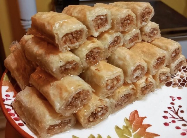 3. Сечење: Откако ќе ги подготвите сите ролни, исечете ги баклавичките на парчиња со посакуваната големина.