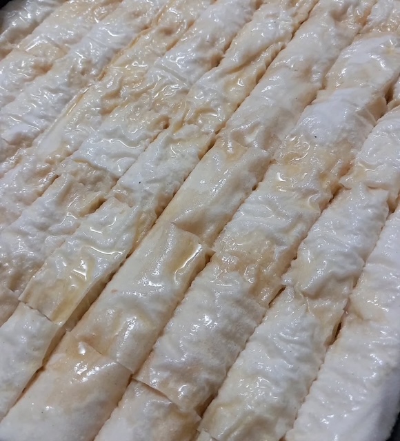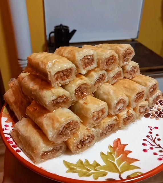 3. Сечење: Откако ќе ги подготвите сите ролни, исечете ги баклавчињата на парчиња со саканата должина.