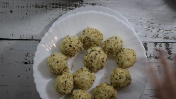 Од смесата со кикирики правете топчиња кои можете да ги валкате во мелени крекери или кикирики, а може да ги оставите како што се. Деталите за постапката можете да ја погледнете во видеото: