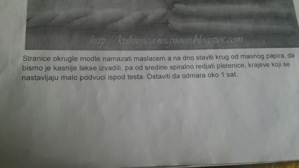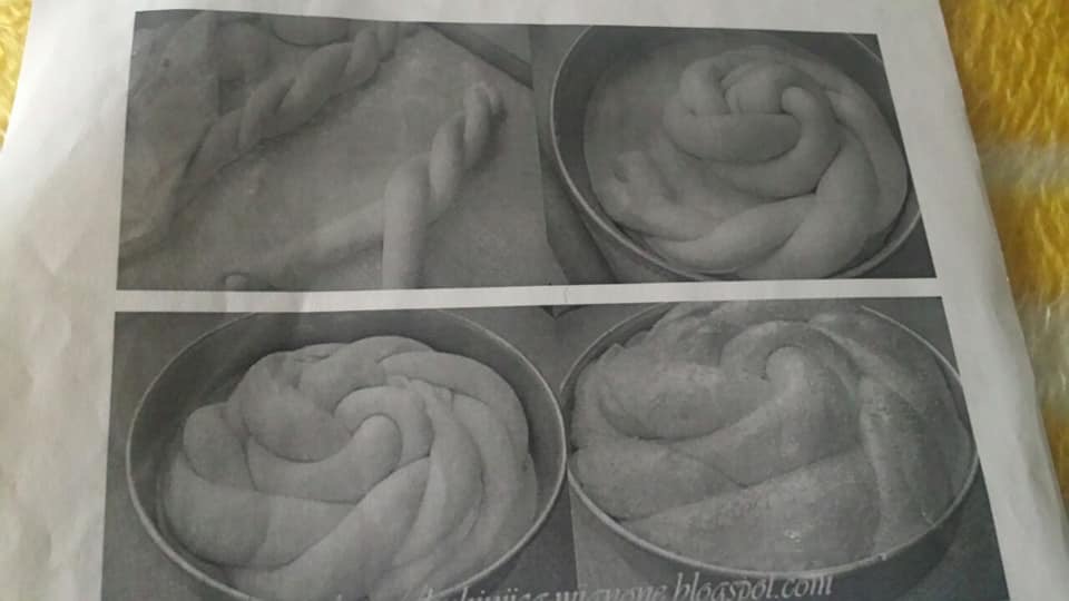 Од средината започнете спирално да ги редите плетенките, а завршетоците малку подвиткувајте ги под тестото за да не се познава спојувањето. Оставете да одмора еден час.