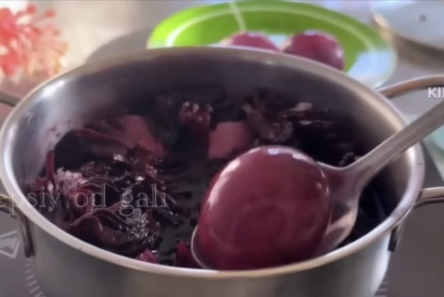 2. Велигденски јајца со чај од хибискус (виолетови и сини нијанси)