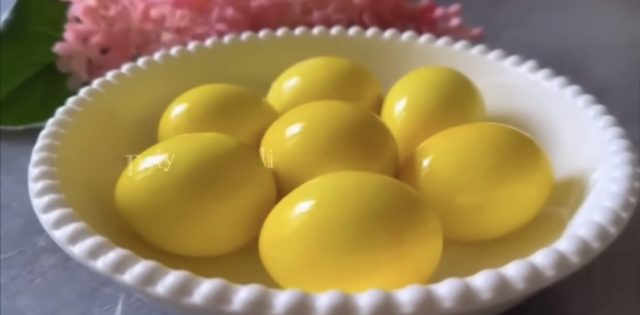 1. Велигденски јајца со куркума (природна златно-жолта боја)