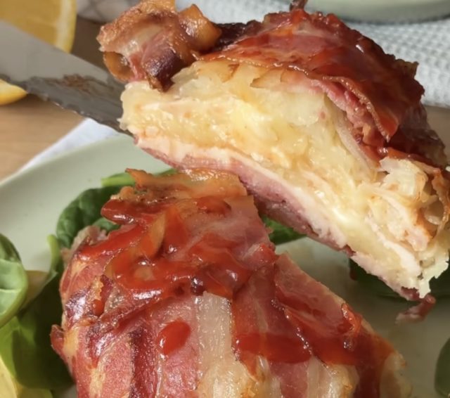 Комбинацијата од нежно пилешко месо, крцкава панцета, кремаста моцарела и слоеви компир создава уникатно јадење што е едноставно за подготовка, а впечатливо за послужување.