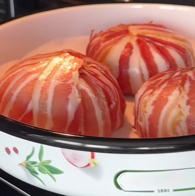 – Печете во загреана рерна на 180°C околу 30 минути, додека панцетата стане крцкава, а пилешкото месо се испече и остане сочно.