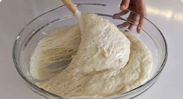 Покријте го садот со фолија или со крпа и оставете го тестото да ферментира 90 минути на топло место.