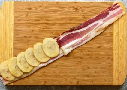 На работна површина поставете две ленти сланина со вкупна должина од 30 см.