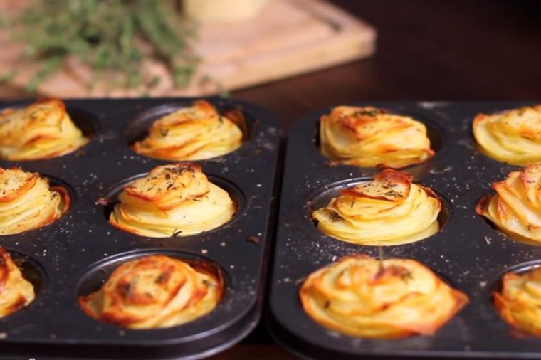 6.Сето заедно убаво свиткајте со помош на двете раце, па добиената ружичка ставете ја во калап за печење на мафини.