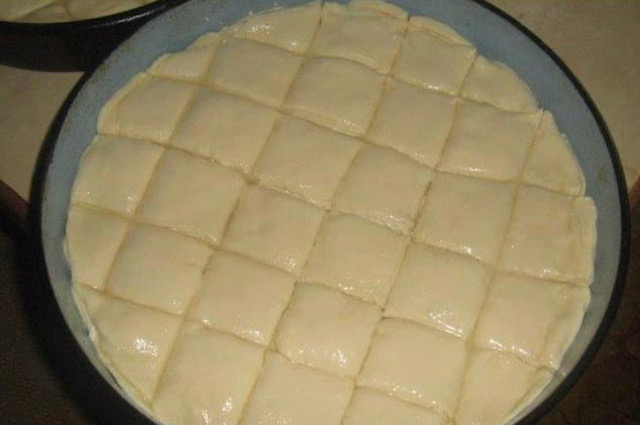 Врз неа ставете нова кора и повторете ја постапката. Секојпат кога ја додавате новата кора малку притиснете ги краевите, а потоа и целата погача. На тој начин погачата малку ја развлекувате. Последната кора не ја премачкувате.