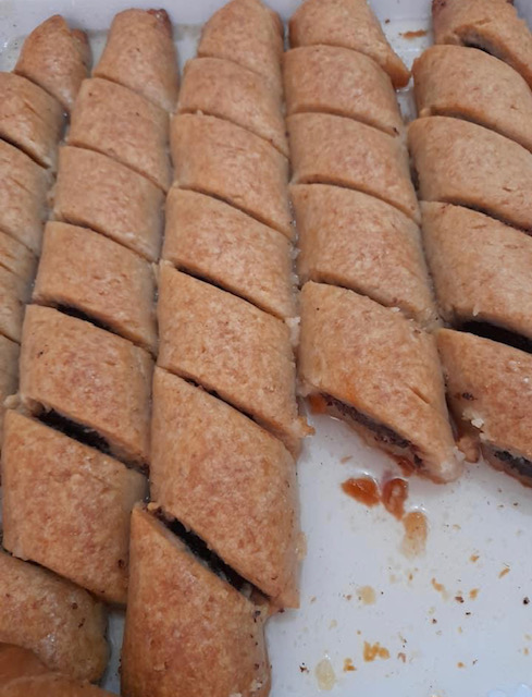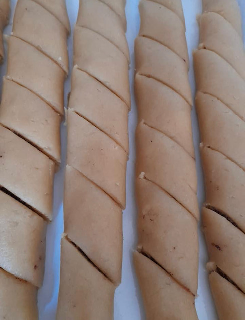 Од секој дел се расукува правоаголна кора со должина на плехот во кој ќе се печат ролатите. Се филува и витка како ролат.