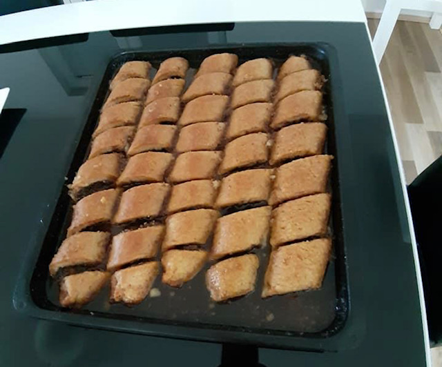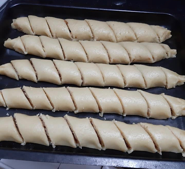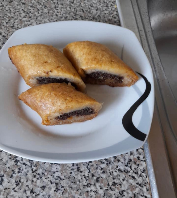 За фил: 100 мл се става на оган да зоврие, па се попаруваат 25 лажици мелени ореви. Се додава 5 лажици шеќер и 2 лажици какао, па убаво се меша додека смесата да се изедначи. Добиената смеса се дели на 5 еднакви делови, за да се распореди рамномерно за 5 ролати. Ролатите се сечат на парчиња со големина по ваша желба.