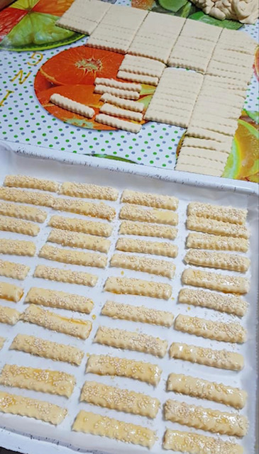 Премачкајте ги убаво со изматено јајце од сите страни за да станат влажни, а одозгора наросете ги со сусам, ким, крупна морска сол, шарена сол, црн сусам, афион, семки од сончоглед, тиква или нешто по желба.