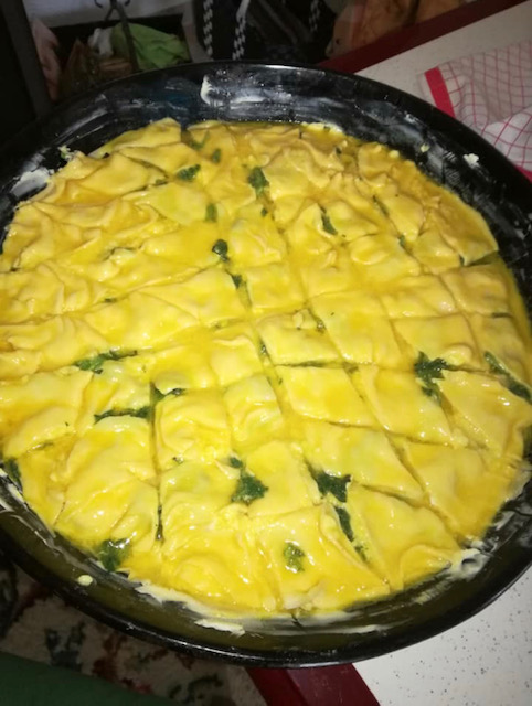 Се сече слично на баклава и се остава да надојде, па се пече во загреана рерна на 250 па на 200 степени додека да фати убава коричка.