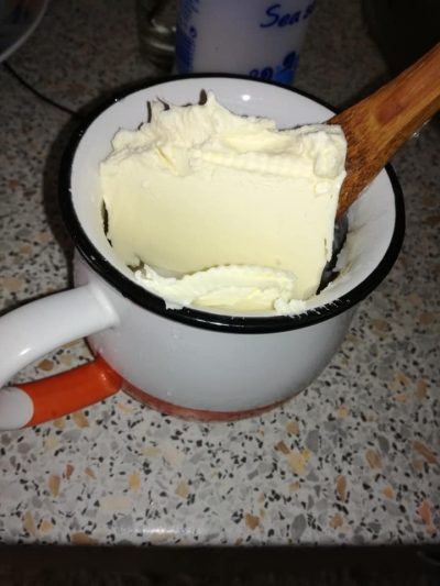 Масло помешано со растопена маст (околу 50 мл масло, 50 мл путер, 50 мл маст)