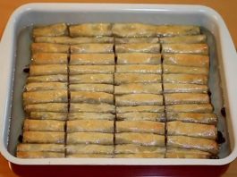 Посни баклавички со готови кори, суво грозје и чоколадо