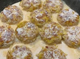 Плескавици гарнирани со рендан компир во вкусен млечен сос, заситно јадење...