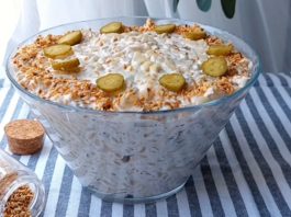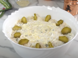 СУСАМ САЛАТА: Освежителна салата со пилешко, сирење и кисели краставички, сѐ...