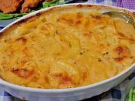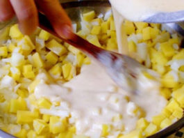 Вкусно јадење со компир од рерна прелиено со павлака и лукче...