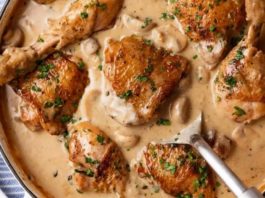 Најмекото пилешко месо во кремаст сос од печурки…Вкусно и лесно јадење