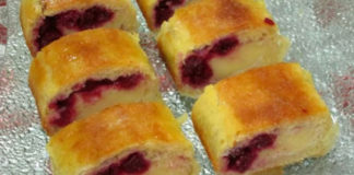 Сочен ролат со вишни и пудинг од ванила и готови кори,...