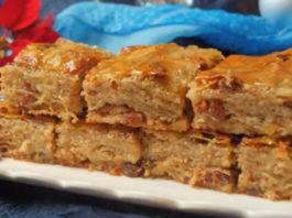 Пита направена од кори за баклава и пудинг, испечена со вкус...