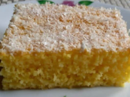 Едноставен колач со кокос кој е многу сочен и мек како...