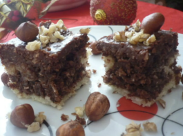 Едноставен, сочен, старински колач со ореви и гриз (мерки со чаша)