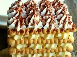 Торта без готвење и печење со бисквити, готова за 10 минути