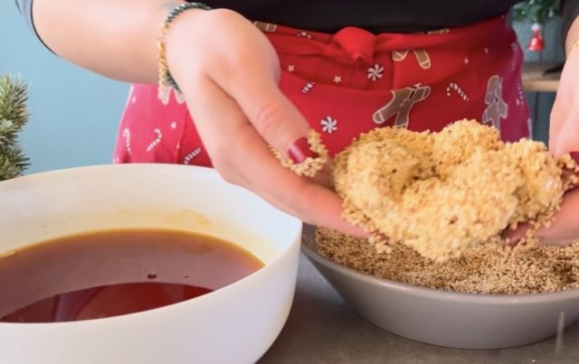 1. Секој ѓеврек најпрво потопете го во оладената карамелна течност, а потоа убаво валкајте го во печениот сусам.