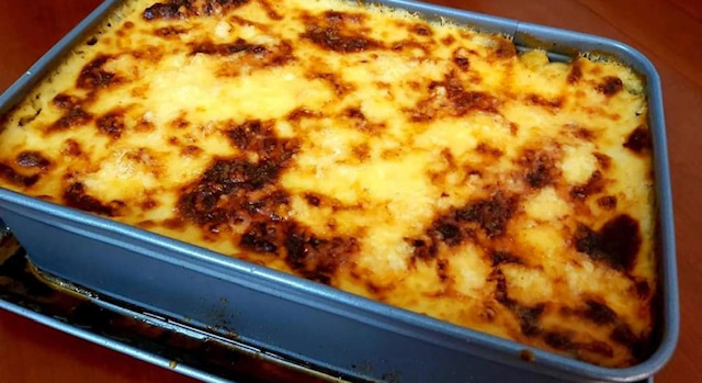 Одозгора наросете со 1-2 раце рендан кашкавал, прелијте го бешамел сосот, а одозгора наредете уште 200 г рендан кашкавал. Ставете да се пече во загреана рерна на 200 степени околу 45 минути. Деталите со постапката можете да ги погледнете во видеото: