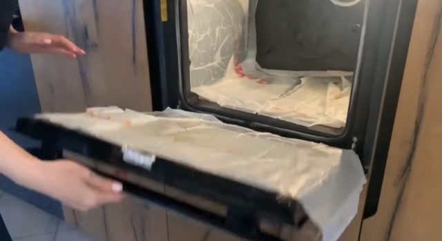 5. Исечете најлонски кеси и обложете ја рерната однатре, со цел да се спречи брзото сушење на растворот и да му се овозможи подолго и подлабоко дејство.