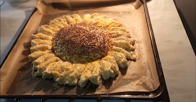 Одозгора премачкјате ја со жолчка, наросете обилно со сусам, а средината наросете ја со ленено семе. Ставете да се пече во загреана рерна на 200 степени додека да зарумени. Деталите од целата постапка можете да ги погледнете во видеото ОВДЕ.